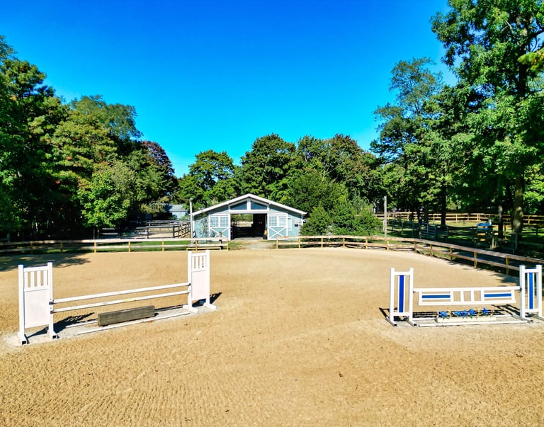 Train in our spacious arena with top-quality footing and jump course